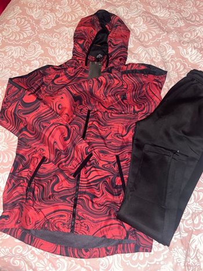 Survêtement unisexe veste respirante idéale pour le sport en extérieur capuche poche à zip, pantalon bien chaud taille élastique avec cordon, neuf jamais porté