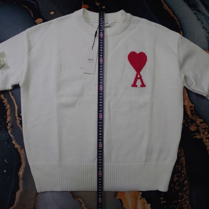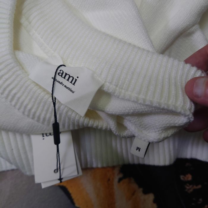 Pull AMI Alexandre Mattiussi Homme Blanc Cœur Rouge Taille M - photo numéro 6