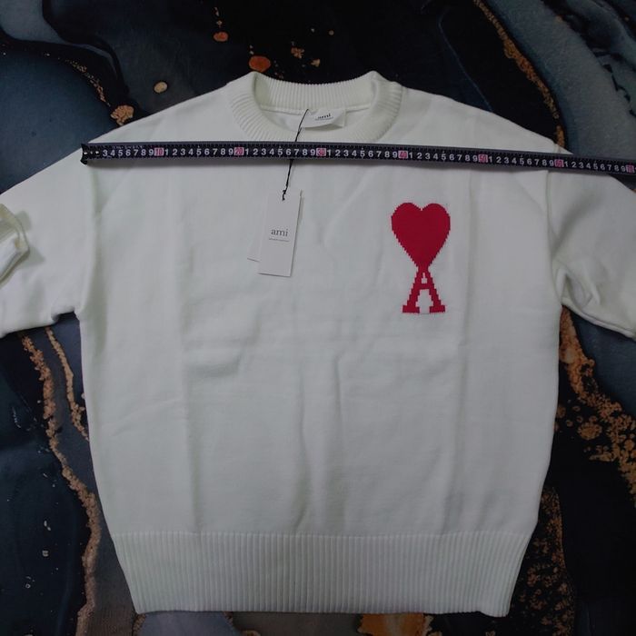 Pull AMI Alexandre Mattiussi Homme Blanc Cœur Rouge Taille M - photo numéro 7