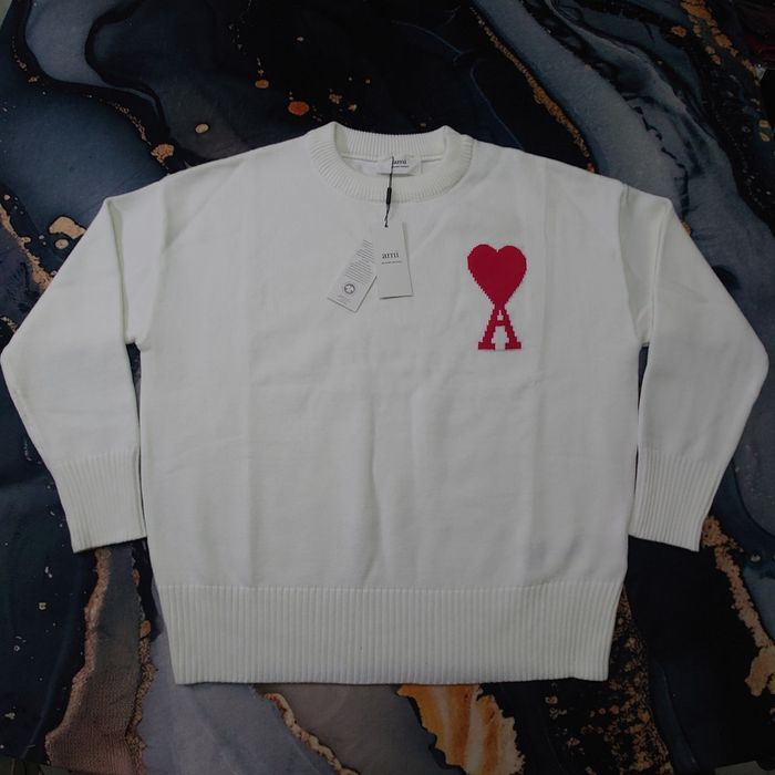 Pull AMI Alexandre Mattiussi Homme Blanc Cœur Rouge Taille M - photo numéro 1