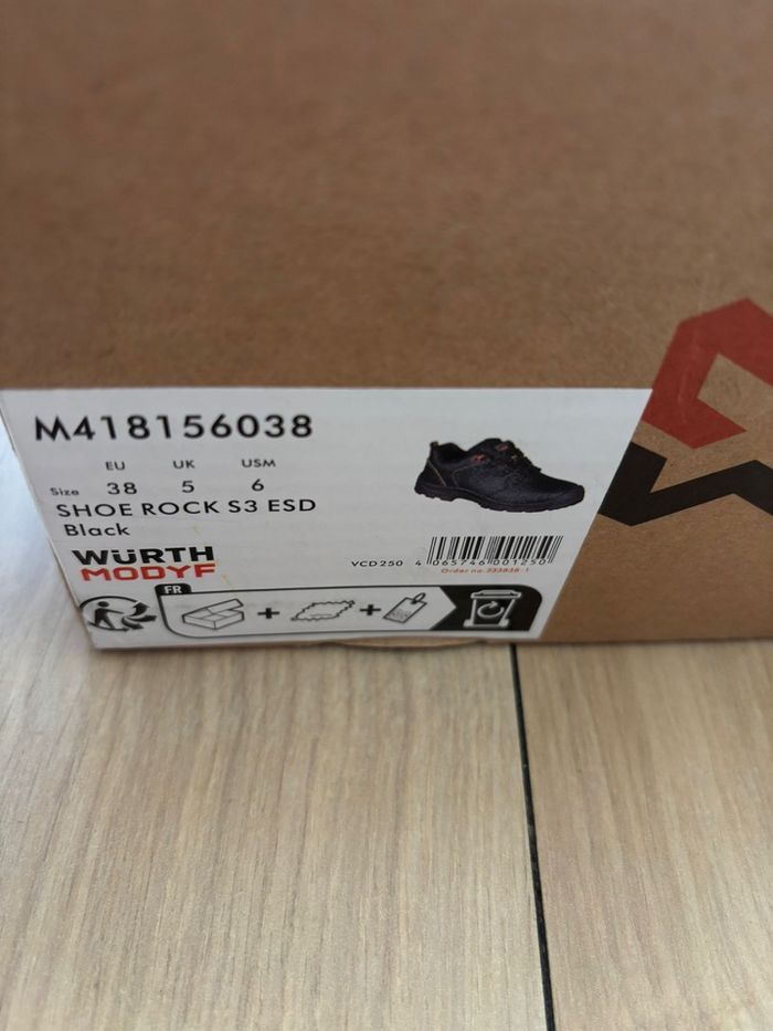 Chaussures de sécurité avec étiquette, neuves en boîte. Modèles disponibles : • 2 paires S3 Safety Shoe Indus – Taille 43 • 1 paire S3 Shoe Rock ESD – Taille 38 • 1 paire S3 Shoe Rock ESD – Taille 44 • 1 paire Chaussure Jogger S1P Grey – Taille 41 💰 Prix choc : 38€ la paire si par unité 🔥 Ou le lot complet : 138 € soit 27,60€ au lieu de 280 € TTC ⚠️ Premier arrivé, premier servi. Prix ferme !