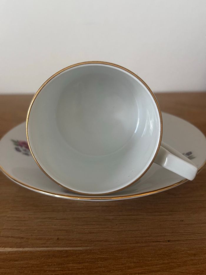 Bel ensemble de 6 tasses et soucoupes porcelaine Allemande fleurie Bavaria - photo numéro 7