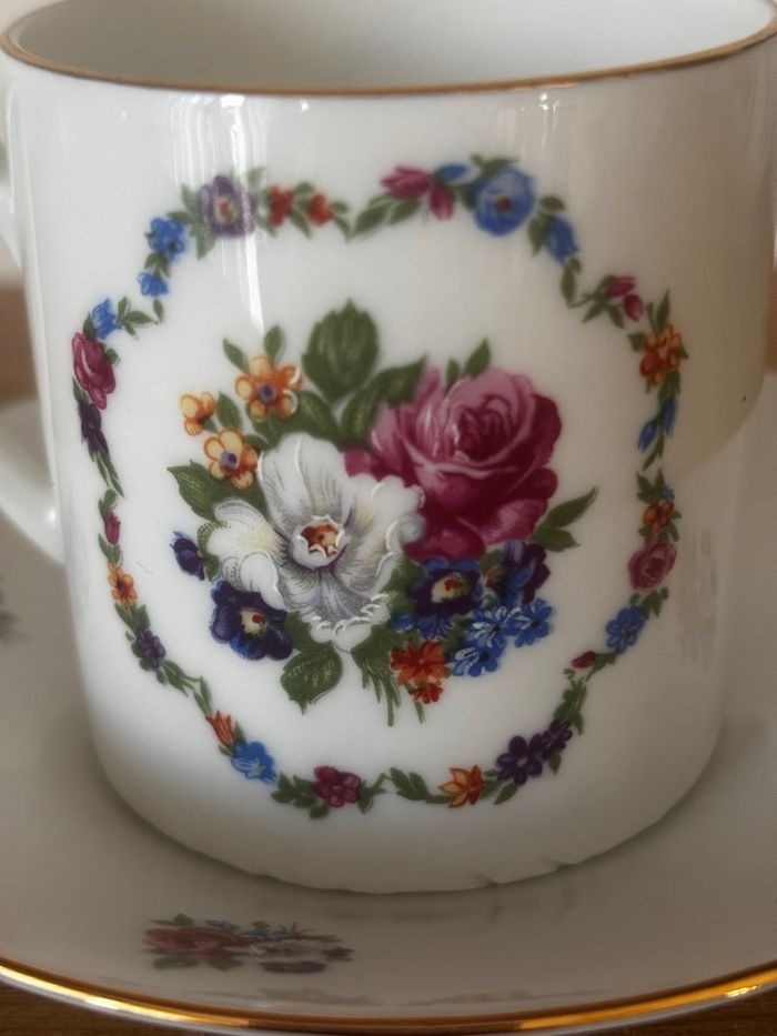 Bel ensemble de 6 tasses et soucoupes porcelaine Allemande fleurie Bavaria