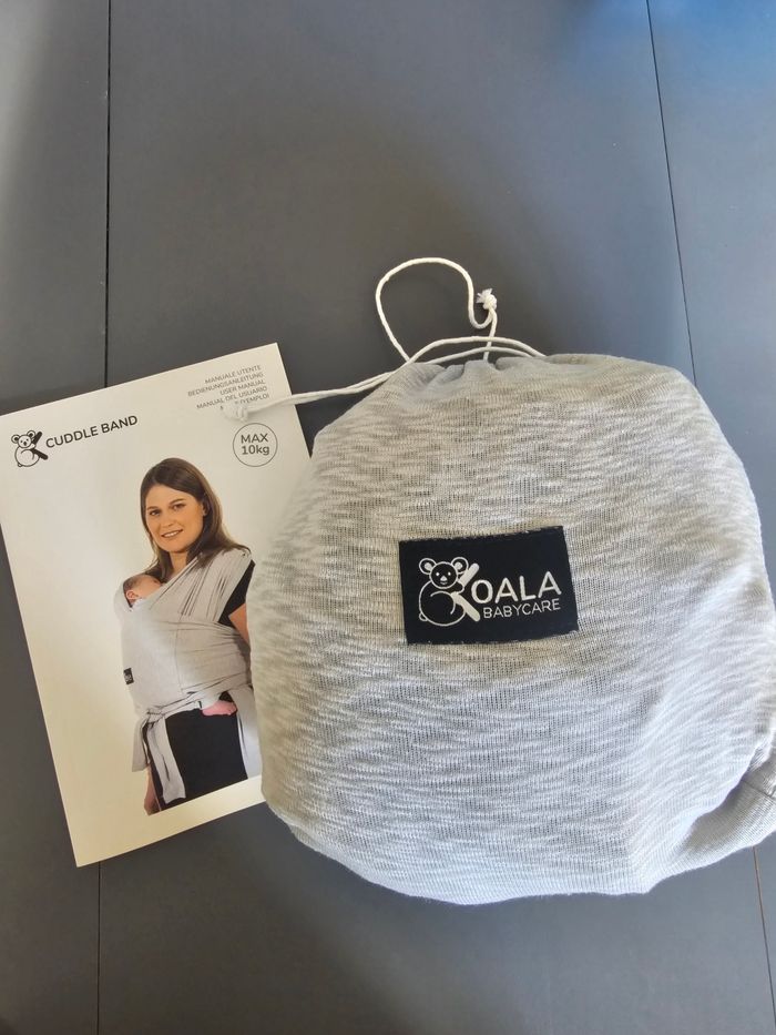Je vends une écharpe porte-bébé Koala Babycare “Koala Cuddle Band”, couleur gris clair, état neuf (jamais utilisée).