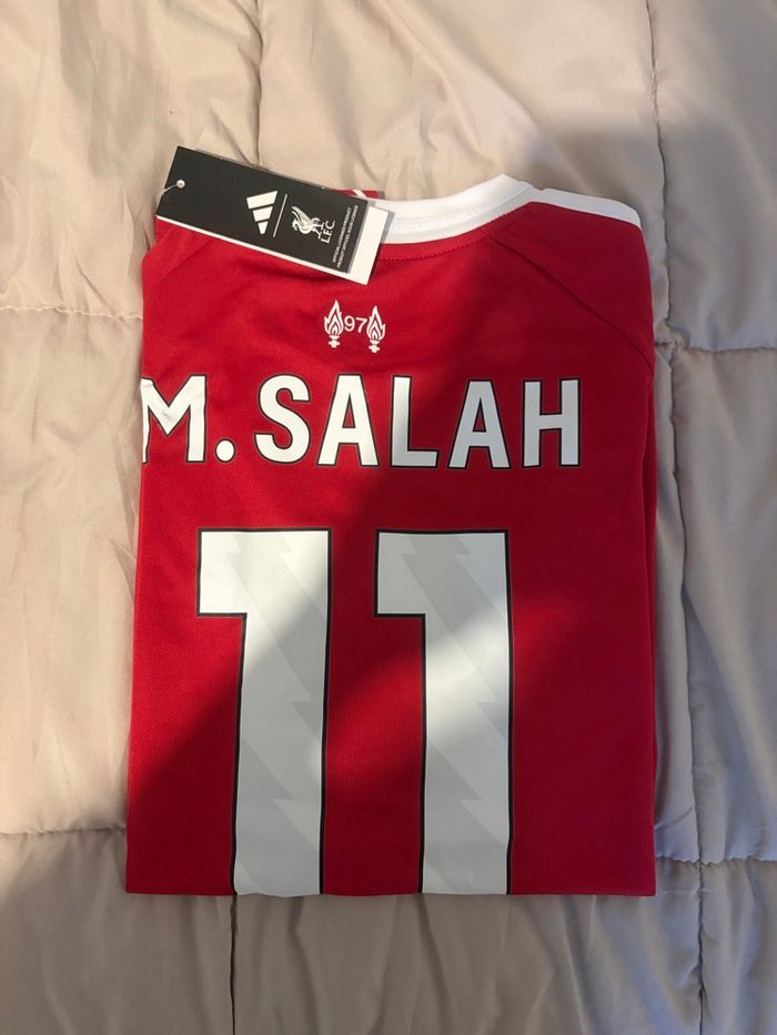 Modèle rouge domicile floquée M Salah 11 saison 2025/2026