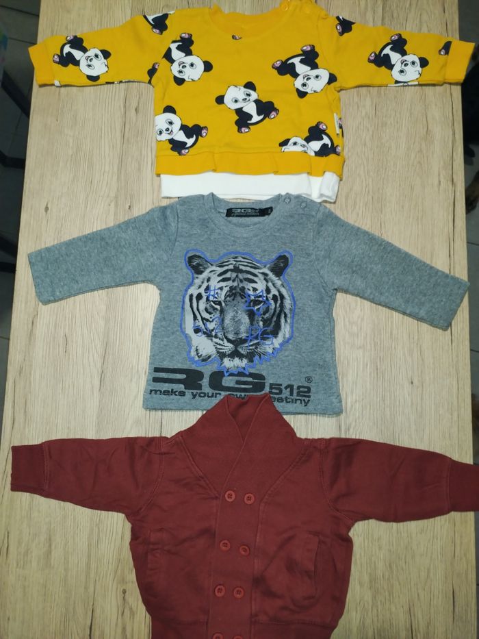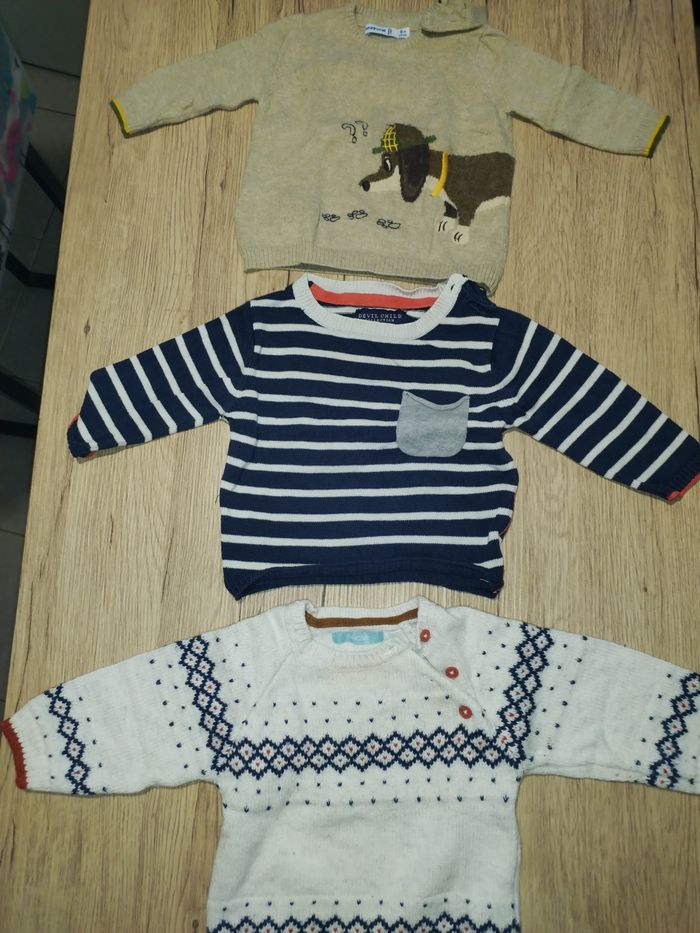 Le lot comprend 11 haut vest et pull Taille 6 mois garçon Plusieurs marque kimbaloo, gemo, domyos, mayoral, obaïbi, boîte à malice