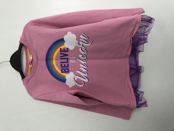 Pull fille manches longues Motif arc-en-ciel et nuages Marque Deno Kids Taille 7 ans