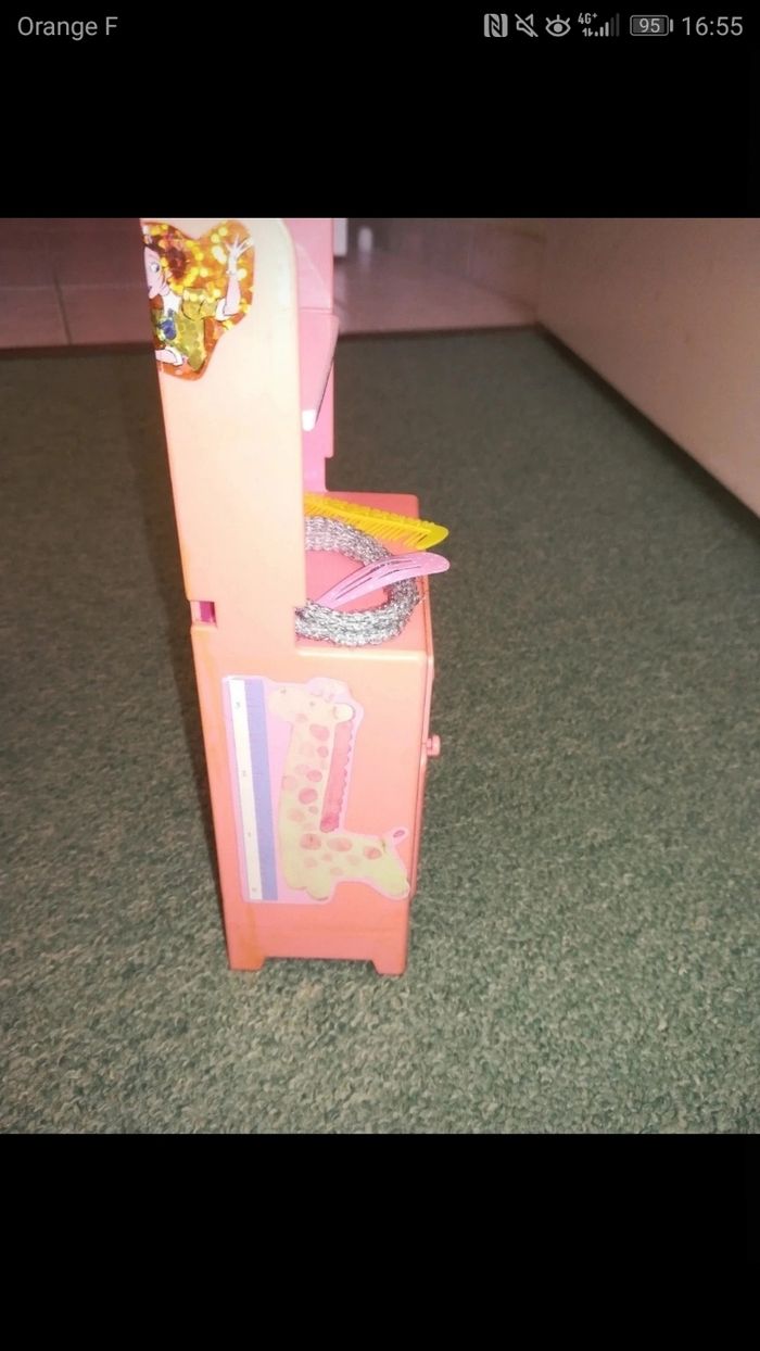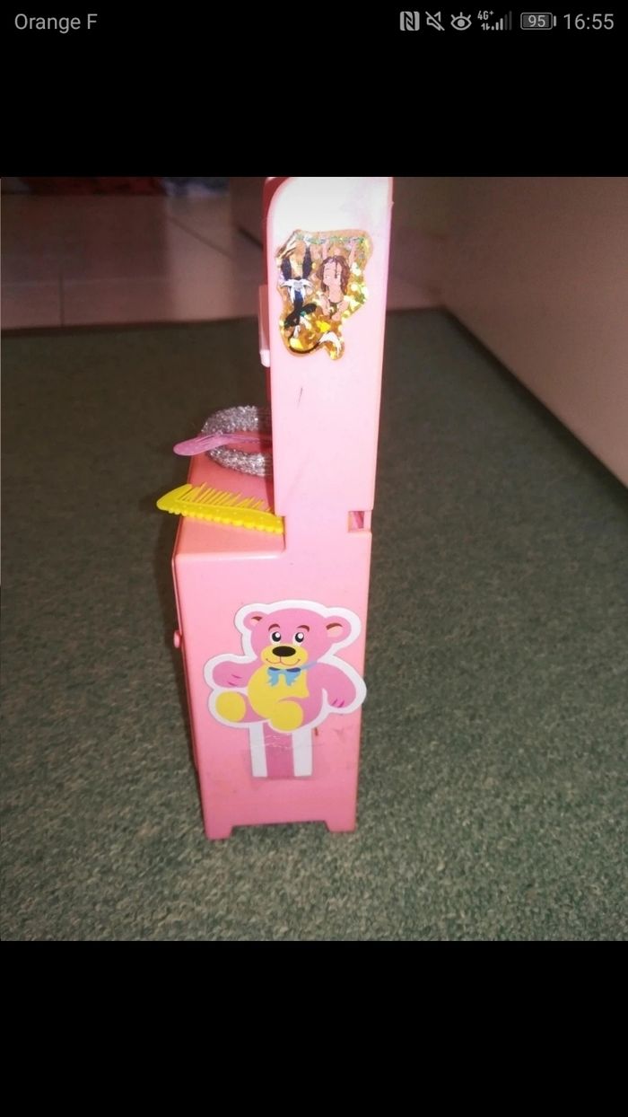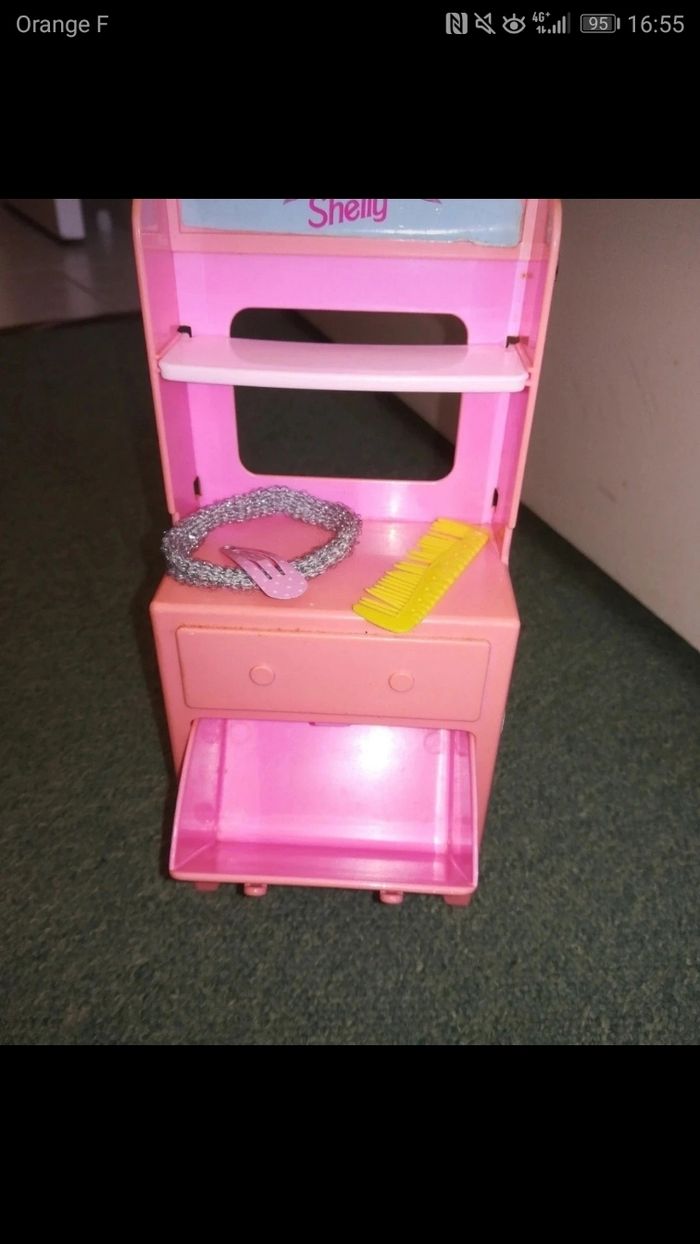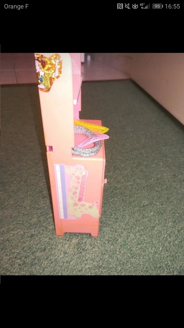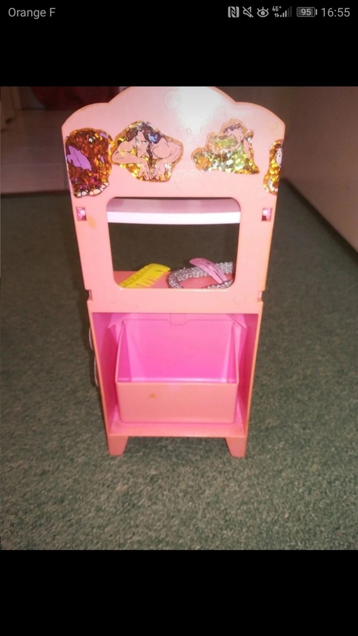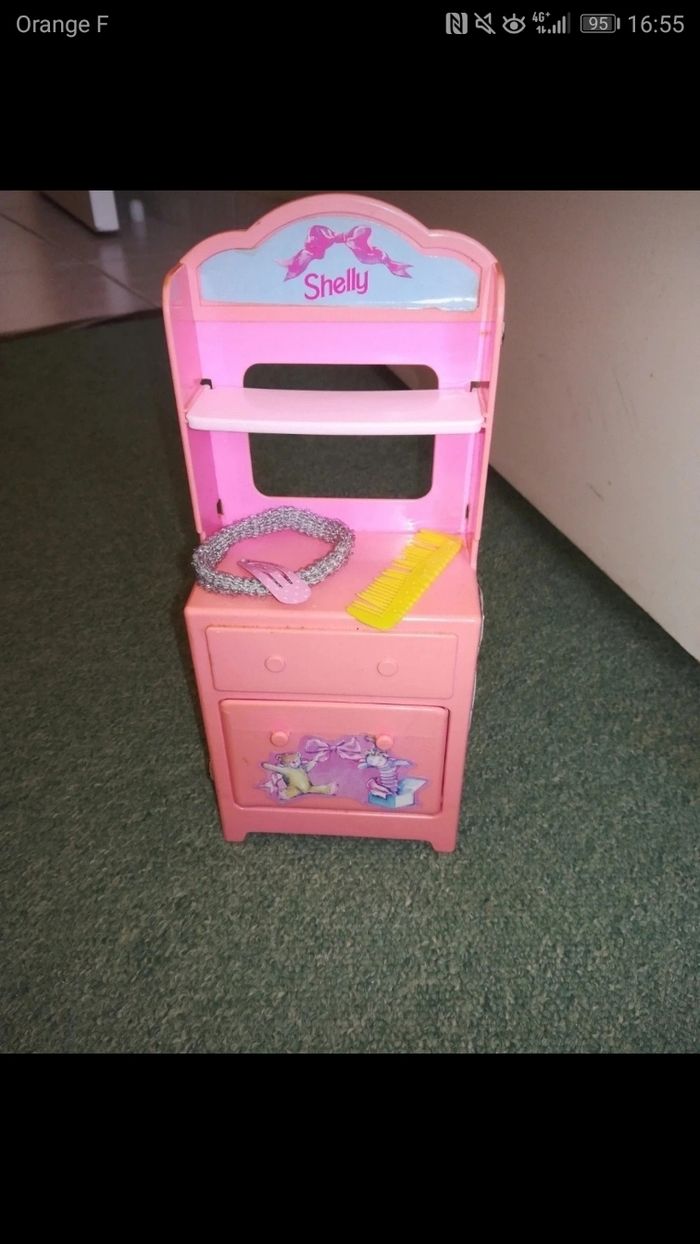 Étagère avec coffre à jouet pour la chambre des filles de barbie, vintage années 80, état moyen