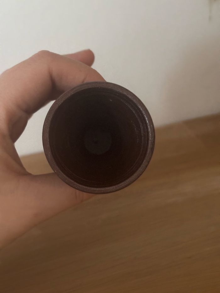 Très beau coquetier En grès Fabrication artisanale à Noron La poterie: Turgis Calvados En bon état Hauteur 6,3 cm Et diamètre 4,5 cm