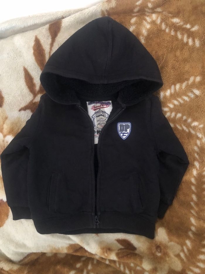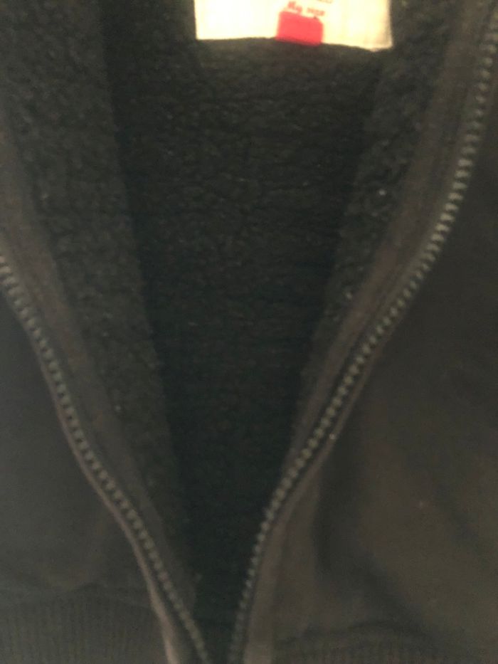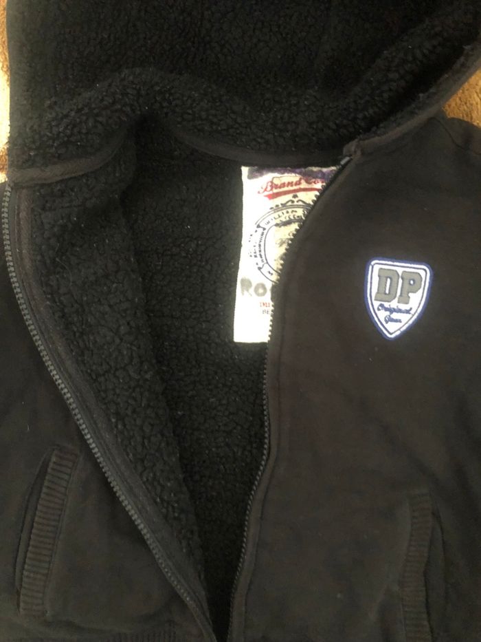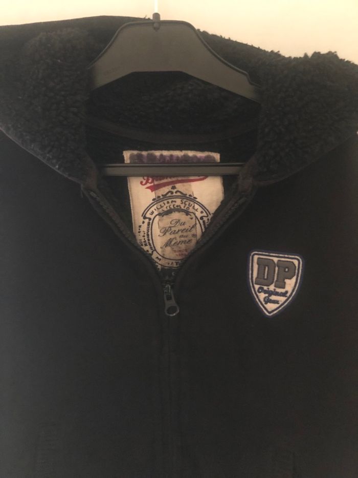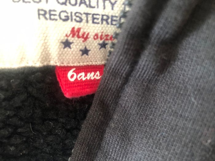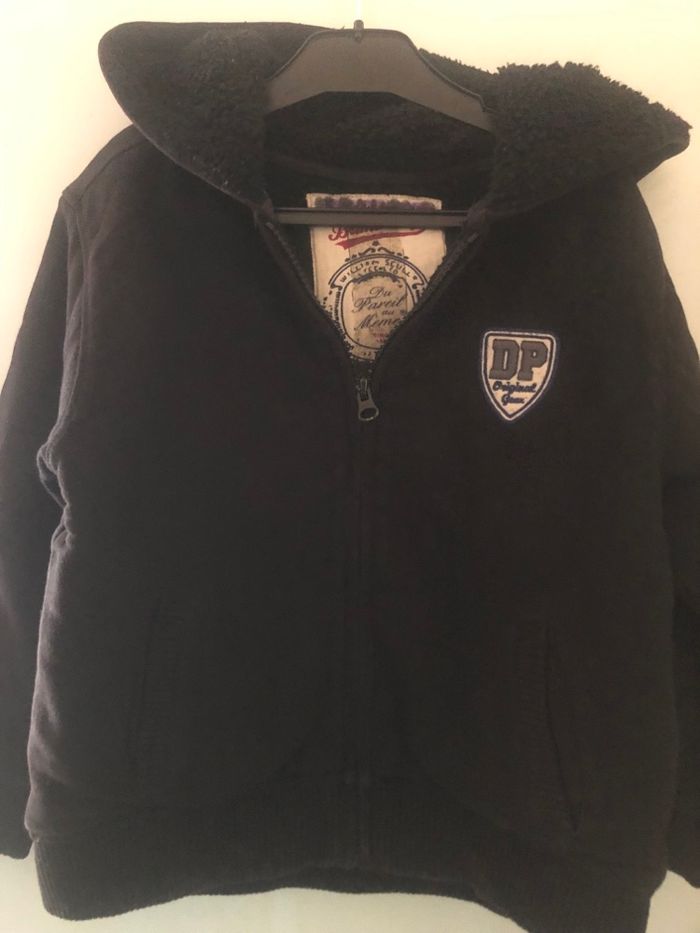 Gilet avec capuche 6 ans DPAM noir. Doublé fourrure donc très chaud.