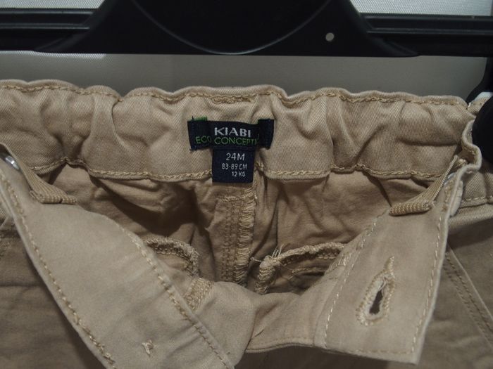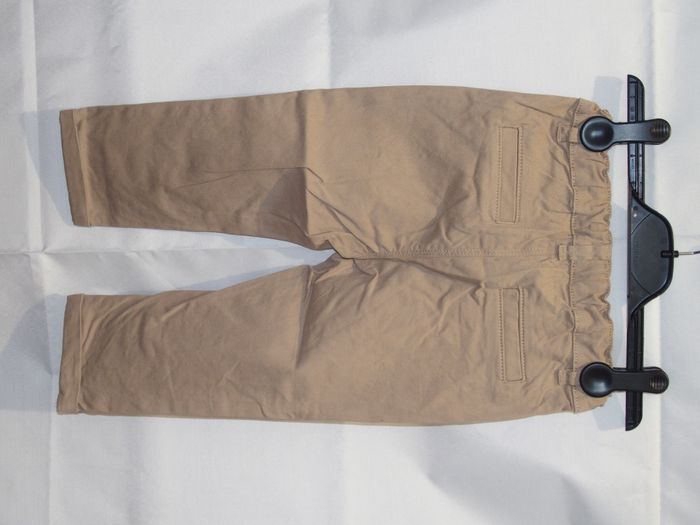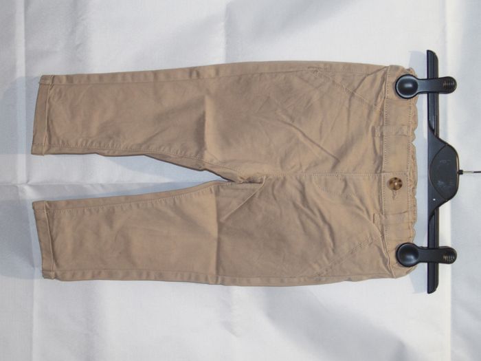 Pantalon style chino couleur beige. En très bon état sans tâches ni trous. Serrage à la taille par élastique à boutons. Taille 24 mois