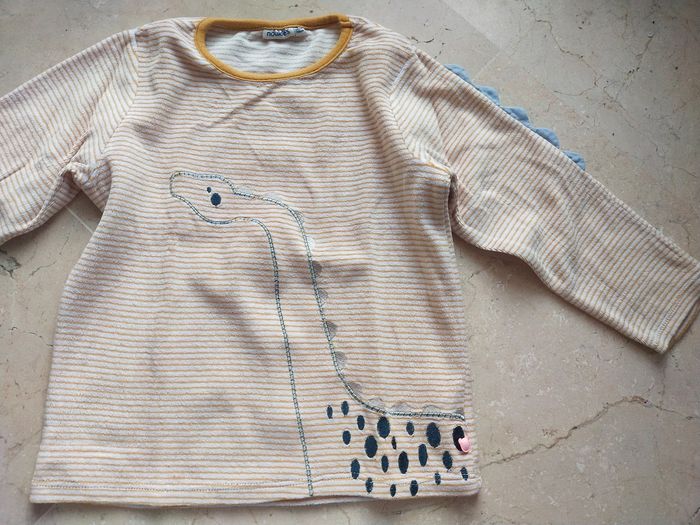 Adorable pyjama Noukies, taille 6 ans. Haut rayé blanc et orange , bas bleu ciel. Porté quelques fois, en très bon état. Remise en main propre à Montpellier possible.