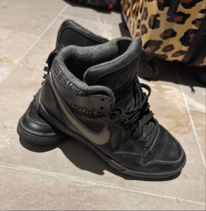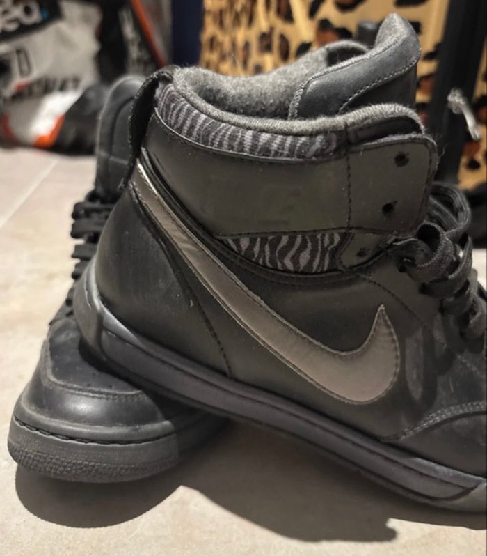 Baskets Nike montantes portées une fois en excellent état Noir en cuir avec logo argenté