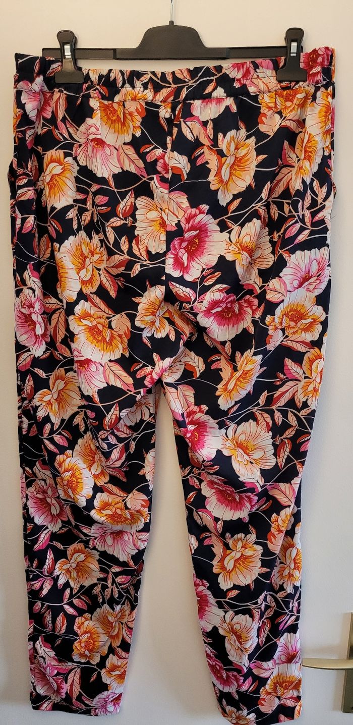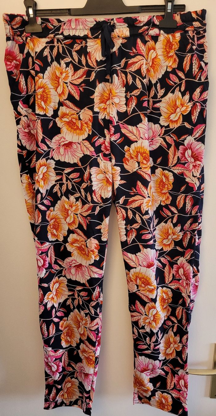Je vends ce pantalon fleuri multicolore de coupe droite type sarouel. - Type de produit : Pantalon - Taille : 44 - XXL - Couleur : Multicolore - Matière : Polyester - Coupe : Droite / sarouel N'hésitez pas à me contacter pour plus d'informations ou de photos. #mlledu10tailleXXL
