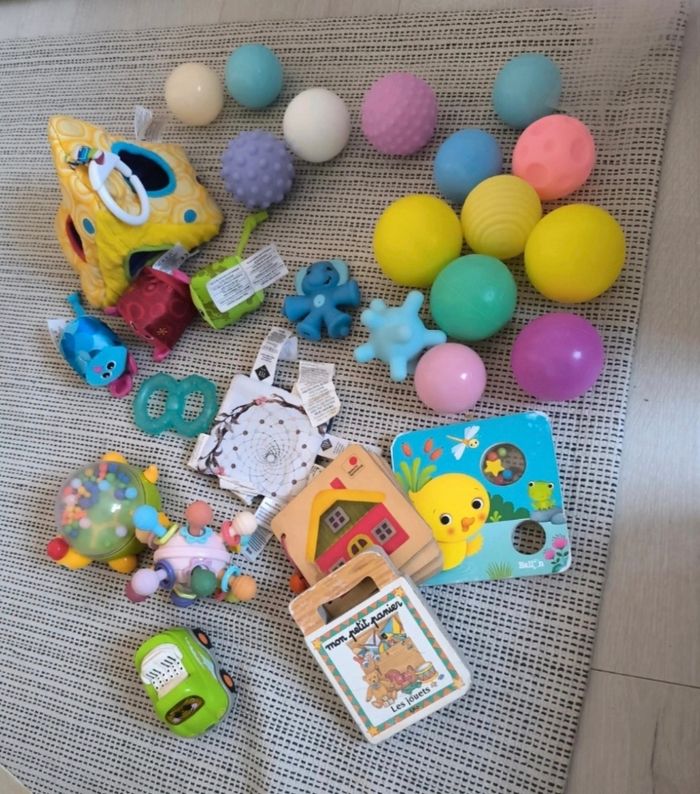 Lot de hochets, balles et autres jouets d'éveil bébé