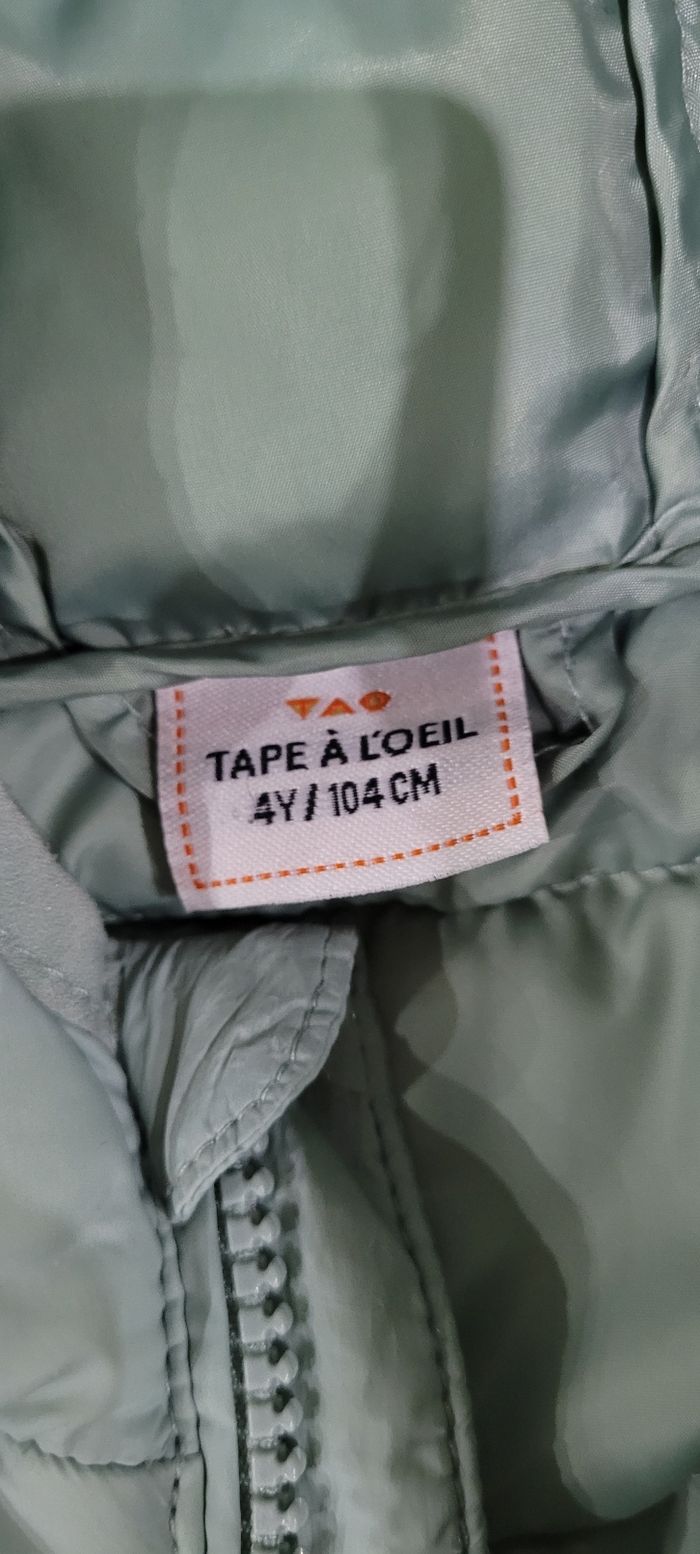 Doudoune TAO 4 ans, bon état, non doublée, idéale en pour les inter saisons. Couleur verte