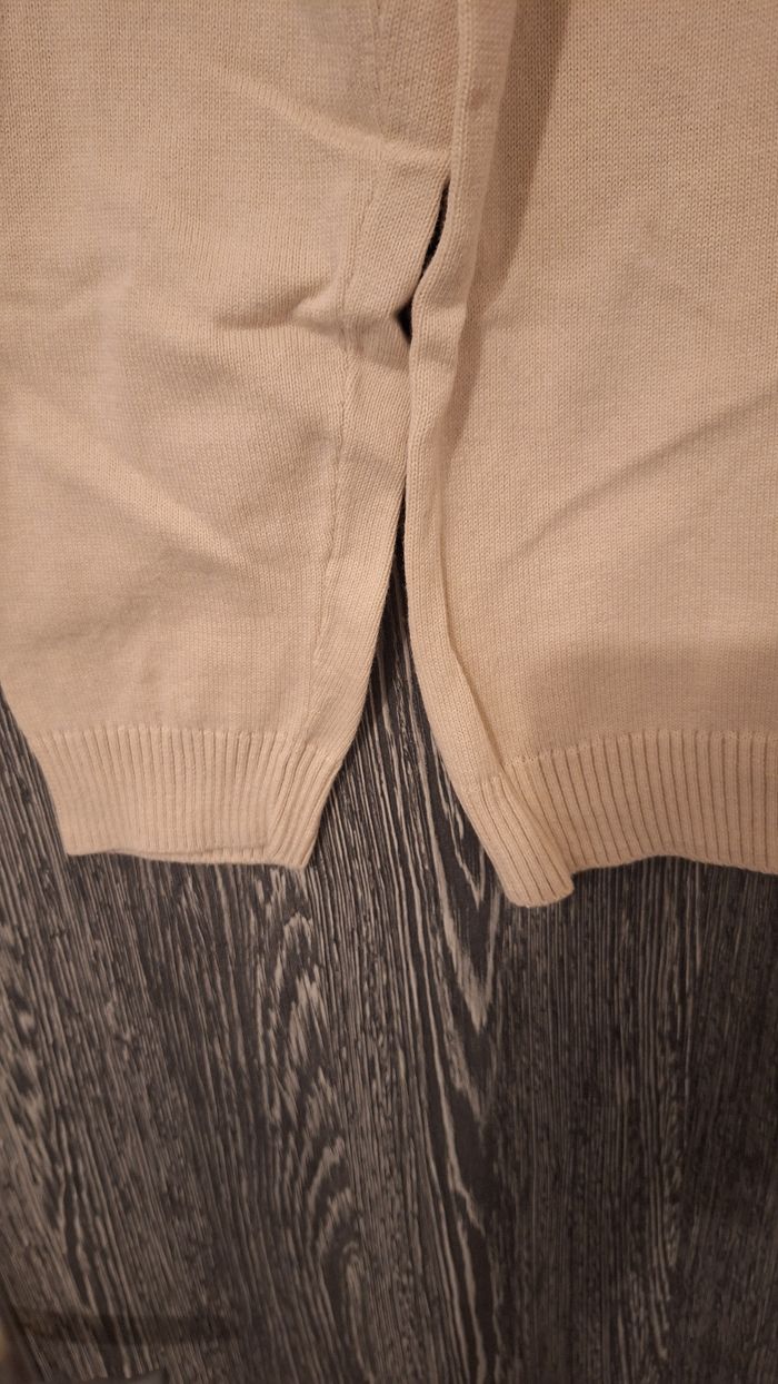 Pull en maille fine beige imprimé manette noire - photo numéro 6