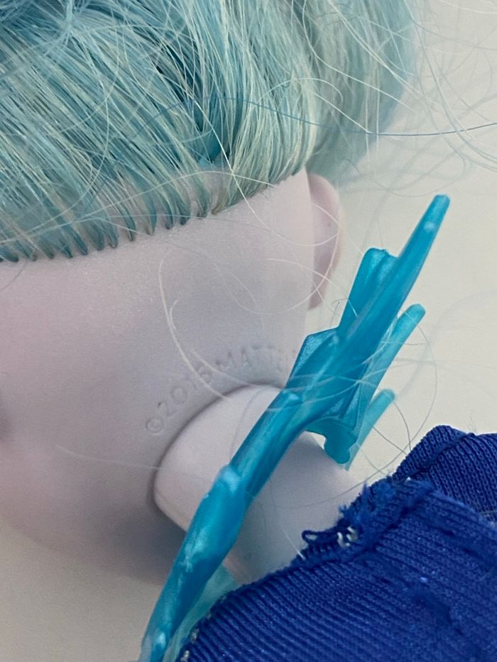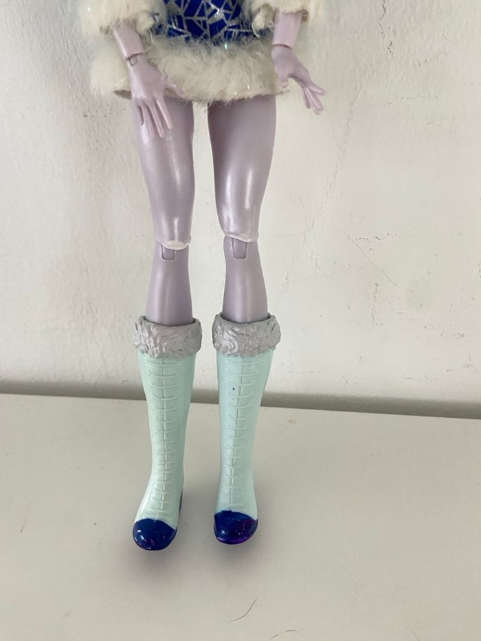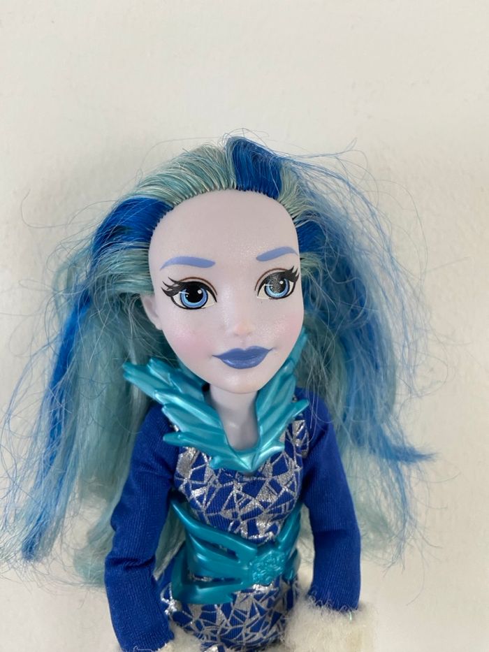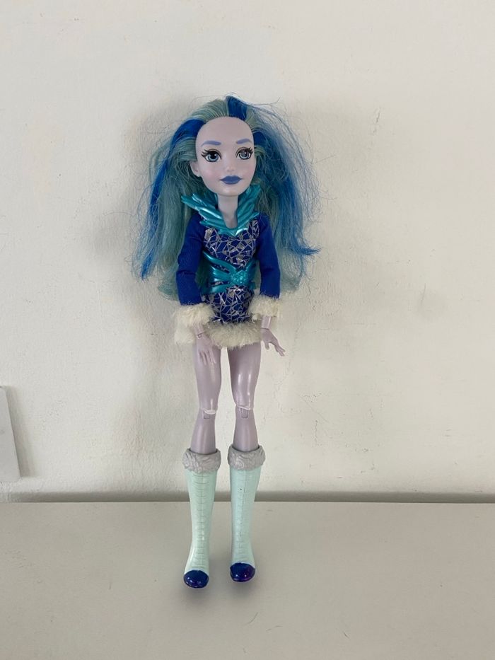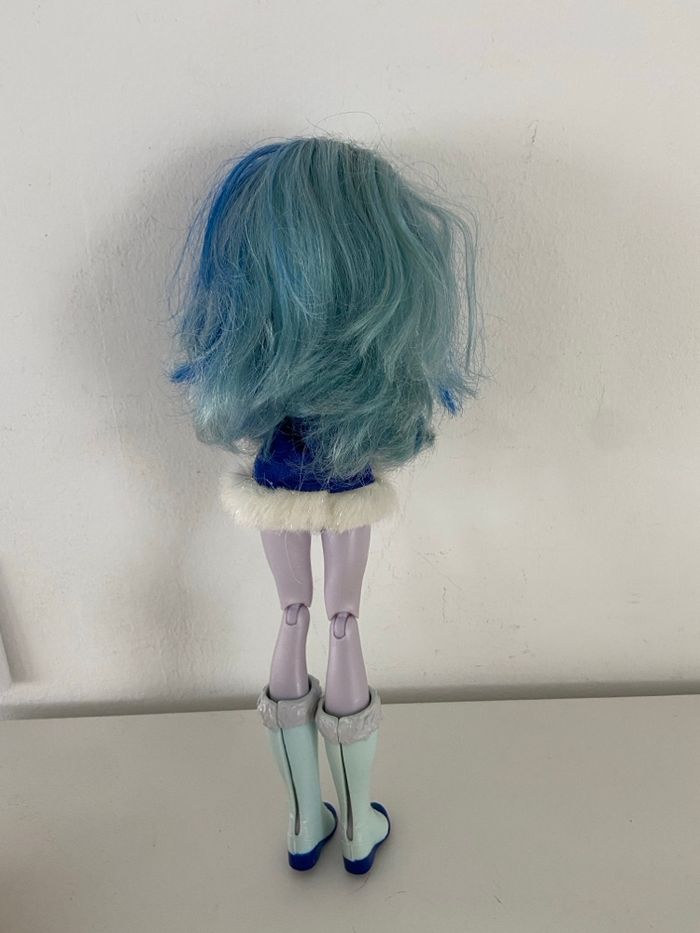 Poupée Frost, aussi appelée Killer Frost, issue de la collection DC Super Hero Girls et fabriquée par Mattel. Personnage : Frost Série : DC Super Hero Girls Fabricant : Mattel (marquage 2015 Mattel visible sur la nuque) Détails de cette version : * Tenue : tunique bleue avec motifs géométriques argentés et bordure en fausse fourrure blanche → Accessoires : col et ceinture en plastique bleu translucide effet glace * Chaussures : bottes bleu clair avec fourrure grise sur le haut * Apparence : peau lavande, lèvres bleues, cheveux bleus bicolores État : bon état général (voir photos pour plus de détails) Envoi soigné et rapide