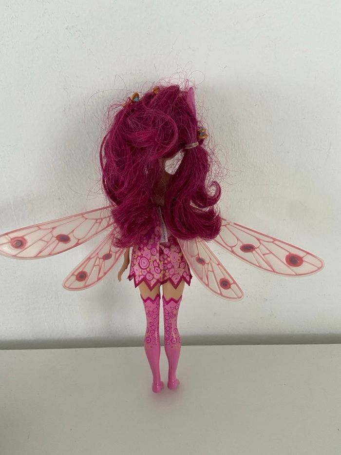 Je vends une poupée représentant Mia, l'héroïne de la série d'animation Mia et moi (Mia and Me). Authenticité : Marquage à la nuque : © 2013 Lucky Punch (société de production de la série) • Version officielle Mattel Détails fidèles à la série : • Ailes translucides roses avec motifs circulaires • Robe courte rose Bottes hautes roses décorées de motifs « bulles » dorés et roses • Cheveux rose foncé • Accessoire d'origine : bague dorée avec pierre bleue dans les cheveux (élément emblématique) État : Très bon état général, propre et bien conservée. Accessoires de cheveux toujours présents. Idéale pour collectionneur ou enfant fan de la série 节 Envoi soigné et rapide.