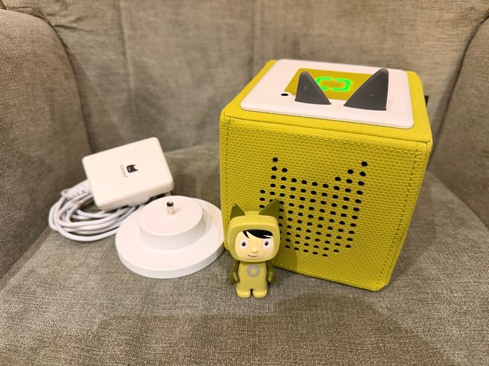 Toniebox verte avec sa tonie créative et son chargeur, le tout dans un état comme neuf, voir photos.