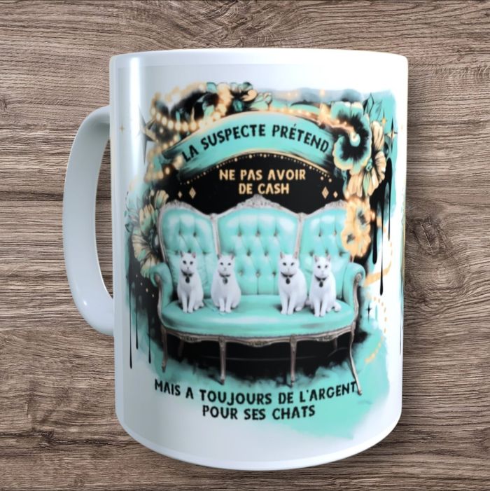 Mug humour avec mon chat j'ai toujours de l'argent....