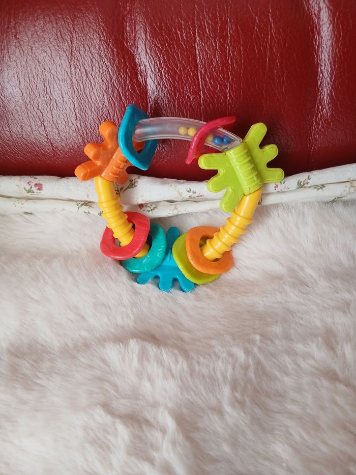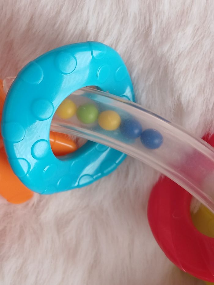 Comprend : Mini peluche Zèbre faisant bruit de pouet-pouet quand on appuie dessus. Tête rembourrée; yeux brodés. Hauteur maxi de 16 cm + Hochet en plastique; multicoloris. Petites ailettes à faire tourner; billes dans tunnel transparent... // voir photos pour détails