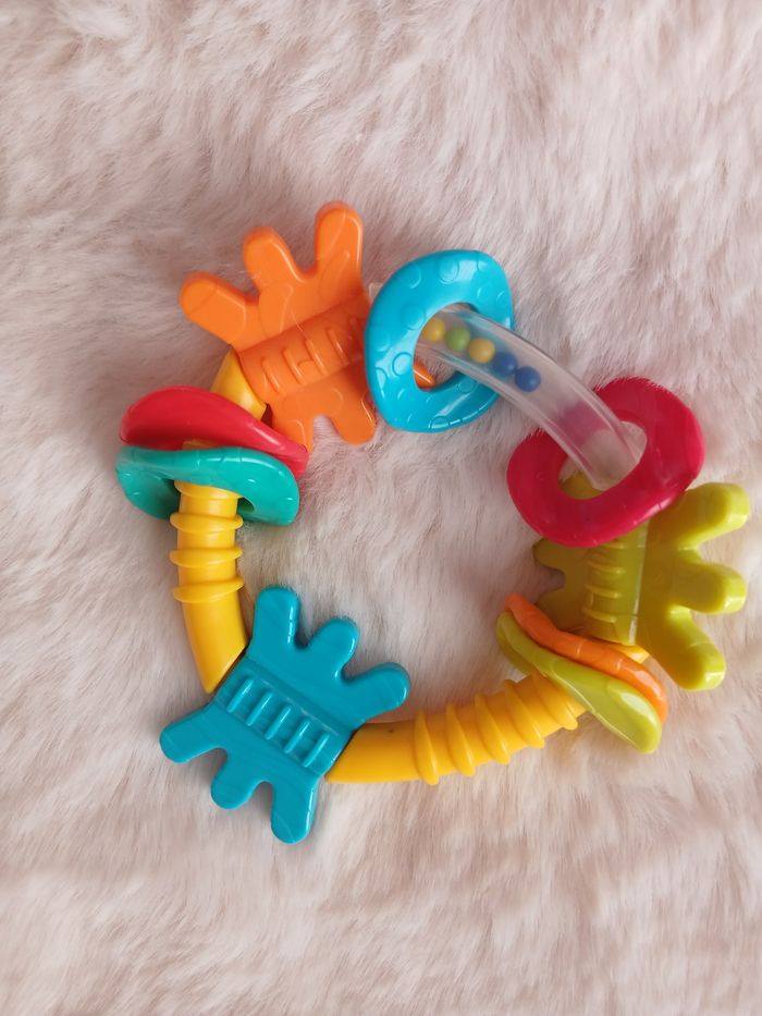 Mini-doudou Zèbre "pouet-pouet" +Hochet multicoloris - photo numéro 9