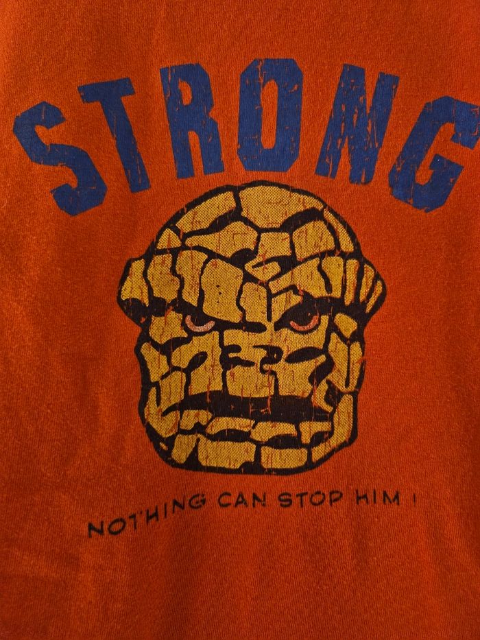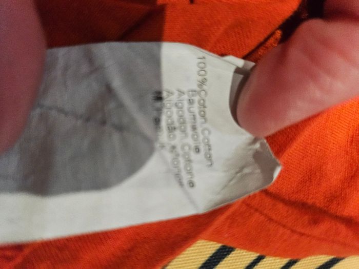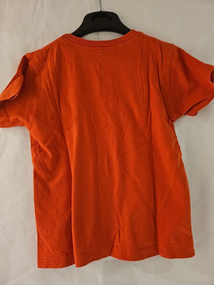 T-shirt manches courtes orange avec imprimé devant effet craquelé d'origine. Marque : Absorba Taille: 6 ans