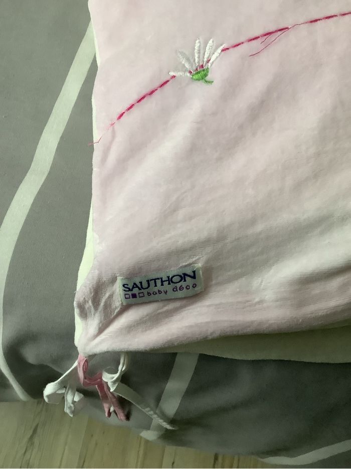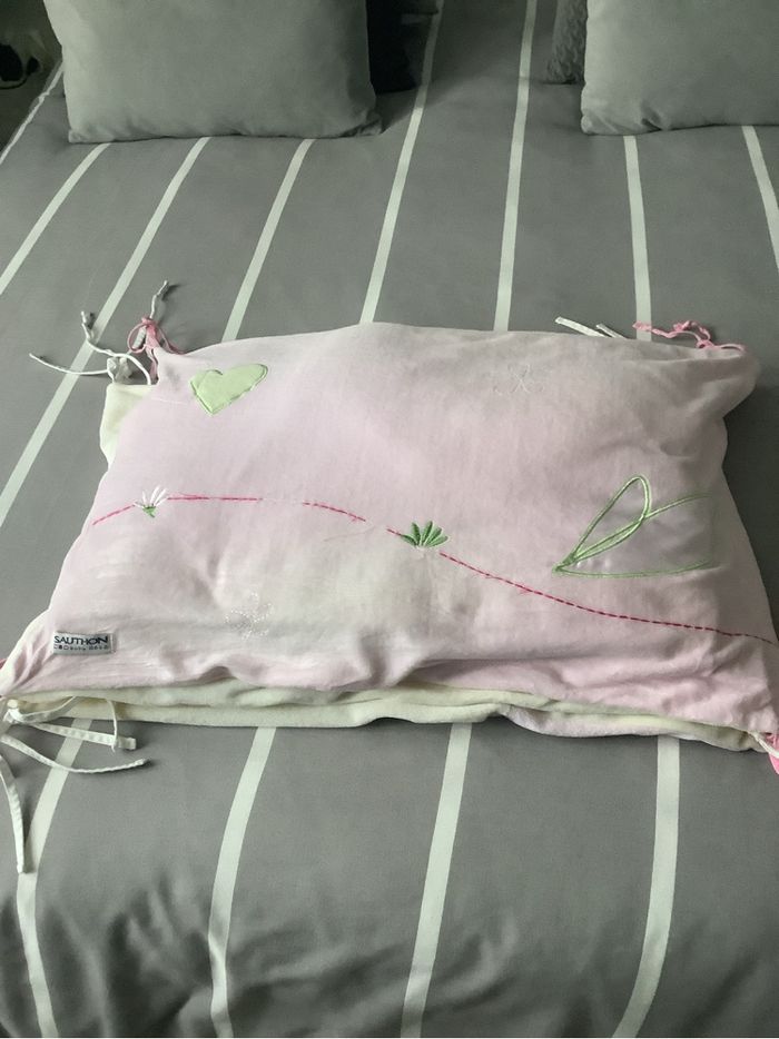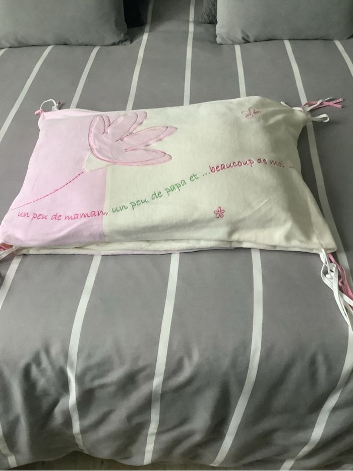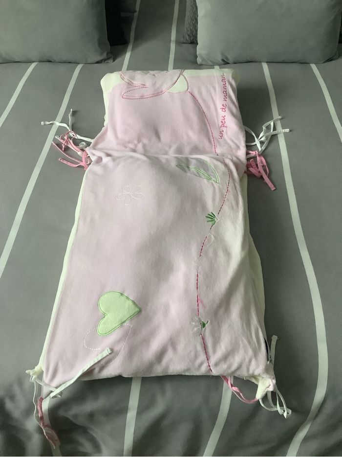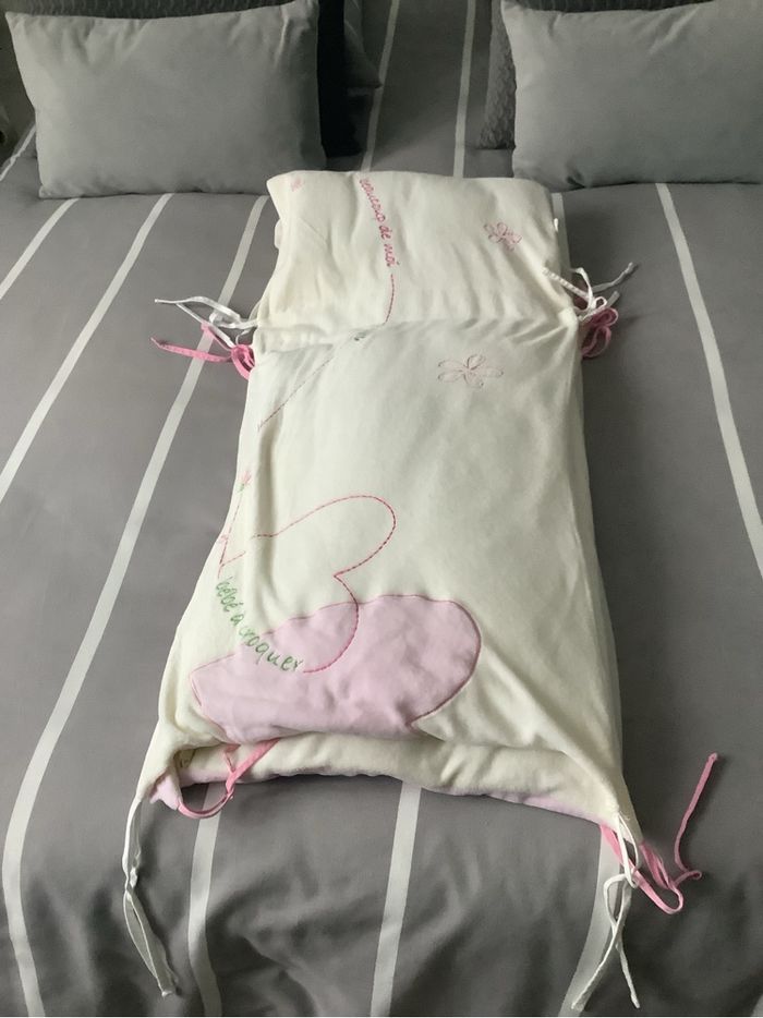 Tour de lit bébé Très doux aspect velours Très bon état Longueur 174 cm Largeur 41 cm Rose et crème
