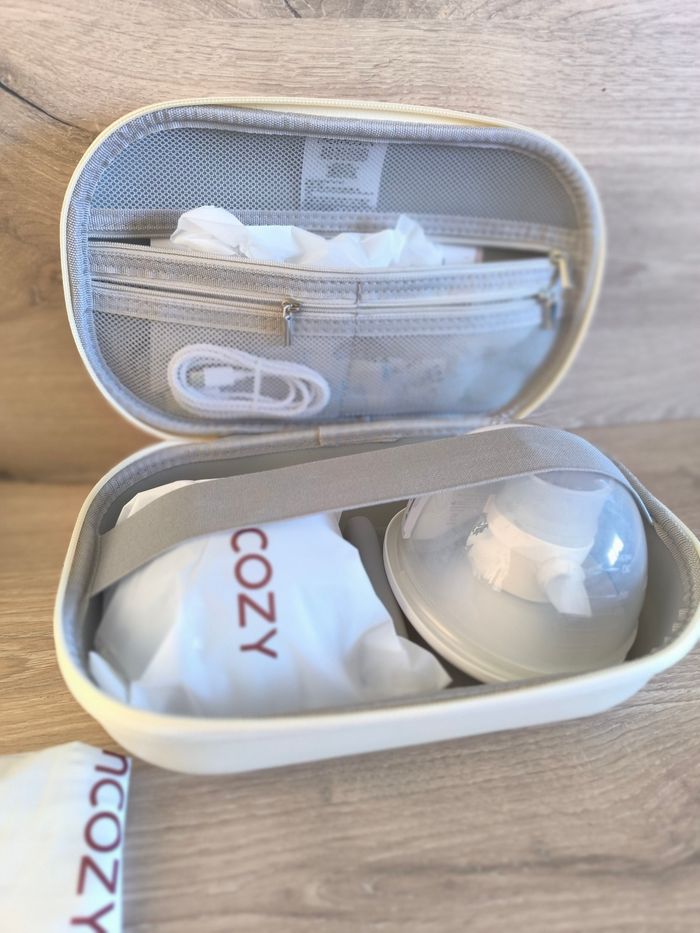 Double tire lait portable Momcozy m5 Avec boîte d'origine L'un a été utilisé 20-25 fois maximum (à ma reprise du boulot), l'autre est encore neuf (achat Février 2025) Avec tous les accessoires (❗manque un seul câble de chargement) Matériau : PP + silicone de qualité alimentaire Taille de bride par défaut : 24 mm Tailles d’insert disponibles : 15 / 17 / 19 / 21 / 27 mm Niveau sonore : < 50 dB Temps de charge : environ 120 minutes Autonomie : 100–120 minutes (6–7 sessions) Port de charge : Type-C (5V/1A) Capacité : >120 ml (pompage recommandé jusqu’à 120 ml / 4 oz) Arrêt automatique : après 30 minutes