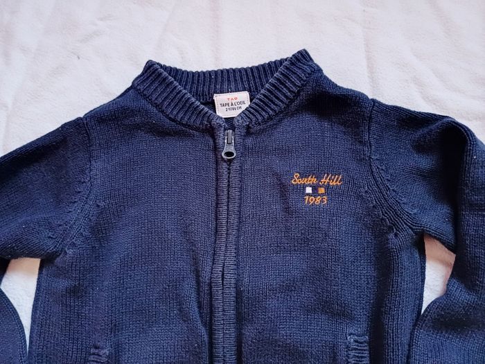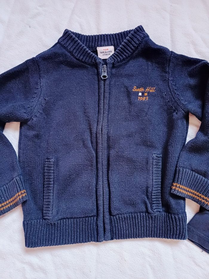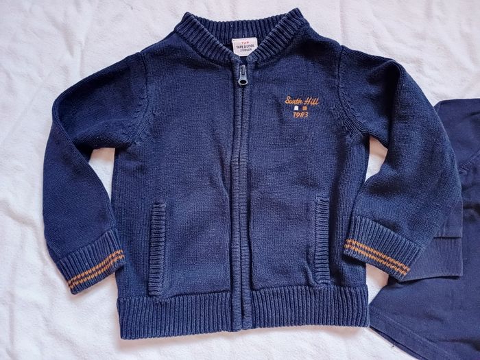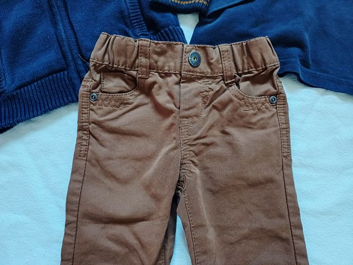 Vends Ensemble pour garcon 24 mois Comprenant 1 pantalon marron Vertbaudet Elastiqué a la taille 1 tee shirt polo Manches longues Marque Tape a l'oeil Un gilet à fermeture éclair Marque Tape à l'oeil En très bon état Prix 10 euros Maison non fumeur et sans animaux
