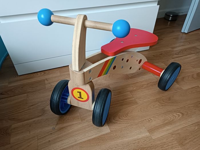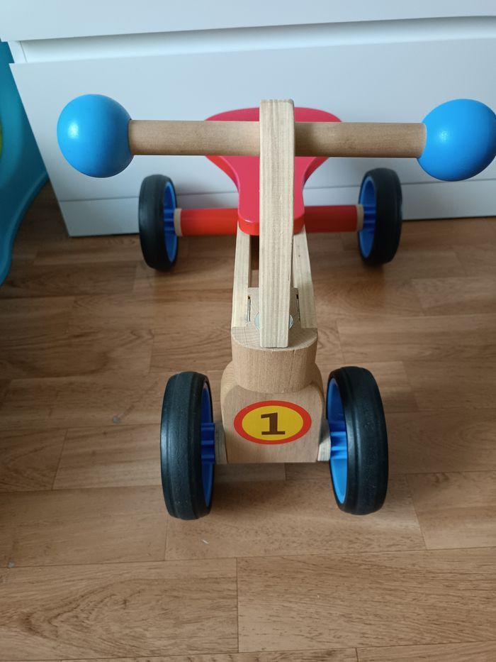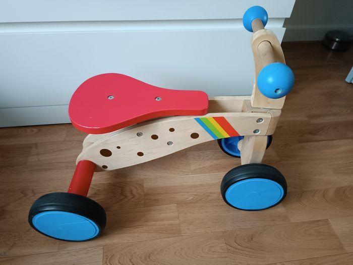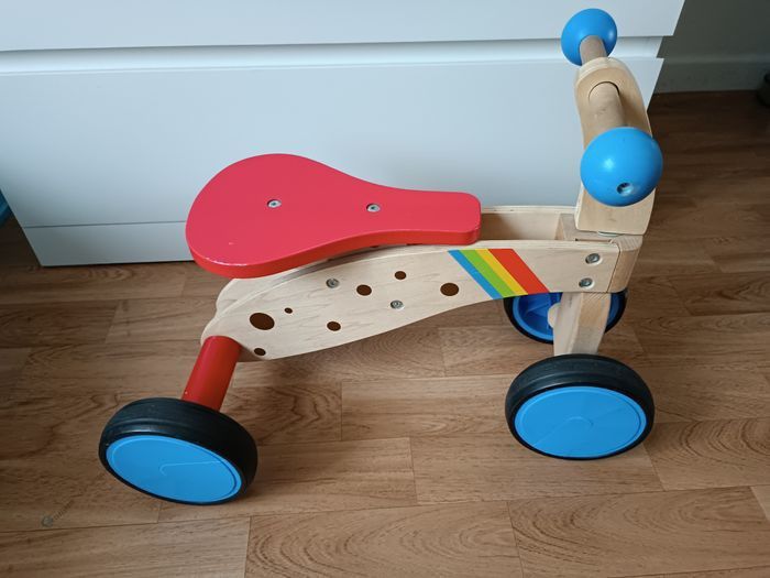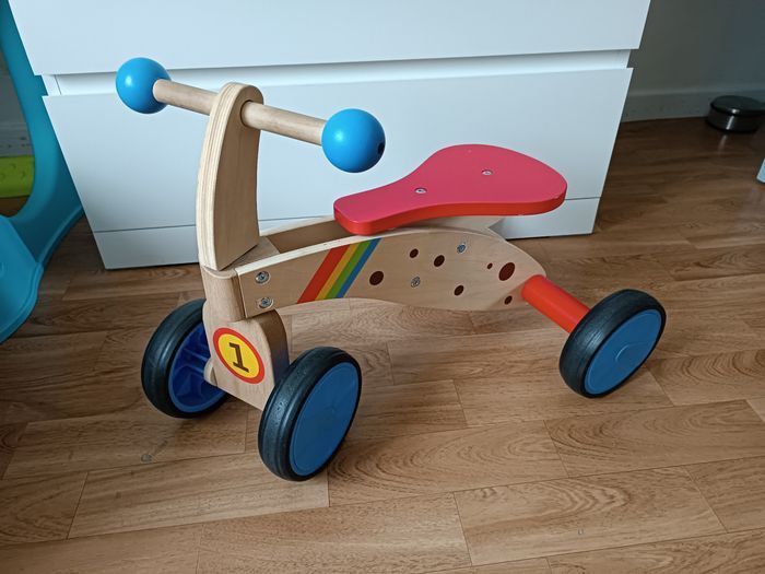 Porteur en bois, solide et coloré, idéal pour aider l’enfant à développer l’équilibre et la motricité dès le plus jeune âge.
