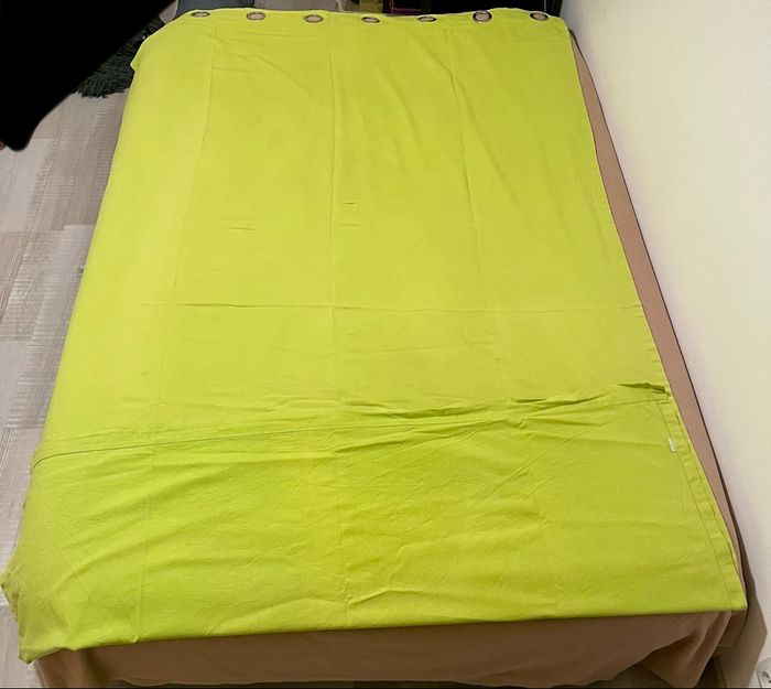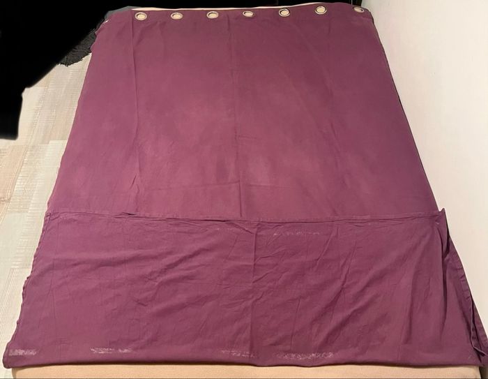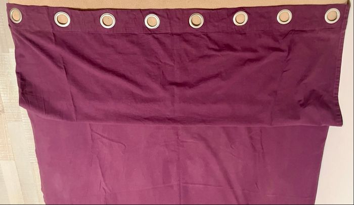 Il y a des légères traces d’usure (voir photo) mais peu visible une fois en place et aucune déchirure. Rideaux épais et bien occultants, idéals pour chambre ou salon.
