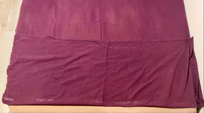 🪟 Je vends une paire de rideaux occultants d’occasion, bicolores vert et violet, en très bon état.