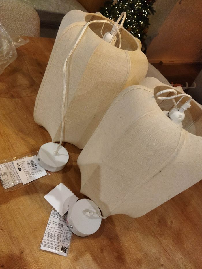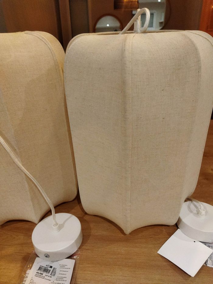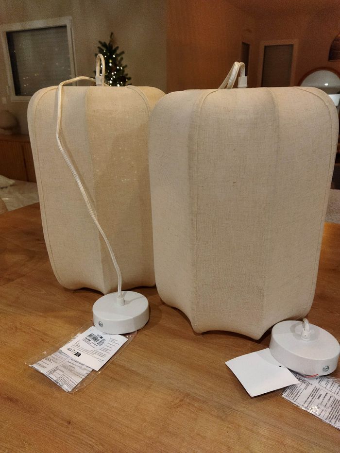 Bonjour Je vends ce lot de deux suspensions lin gavanan de chez maisons du monde. Neuf car changement de suspension en vue. Achetée 44,99 euros chacune Envoi possible