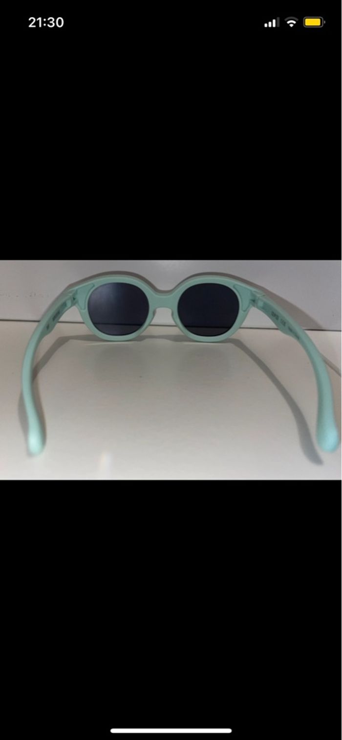 Lunette de soleil polarisée ☀️ Couleur vert menthe (Aqua Green de la marque) Modèle #C 0-9 mois En très bon état - première main - achetée le 31/03/2025 💫 Paire de lunette + attache, étui de rangement en feutrine, boîte, notice. Description marque : « Lunettes de soleil de 0 à 9 mois (tour de tête 34-41 cm). Forme #c: carrée, rétro, espiègle - Verres polarisés - Protection 100% UV (UV 400) catégorie 3 - Modèle mixte et universel - Pochette de rangement et cordon en silicone inclus dans la boîte. » 🏡 Maison non fumeur, sans animaux et lessive clean 🍃 Plus d’articles dans mon dressing. N’hésitez pas à faire des lots et propositions de prix 🧞