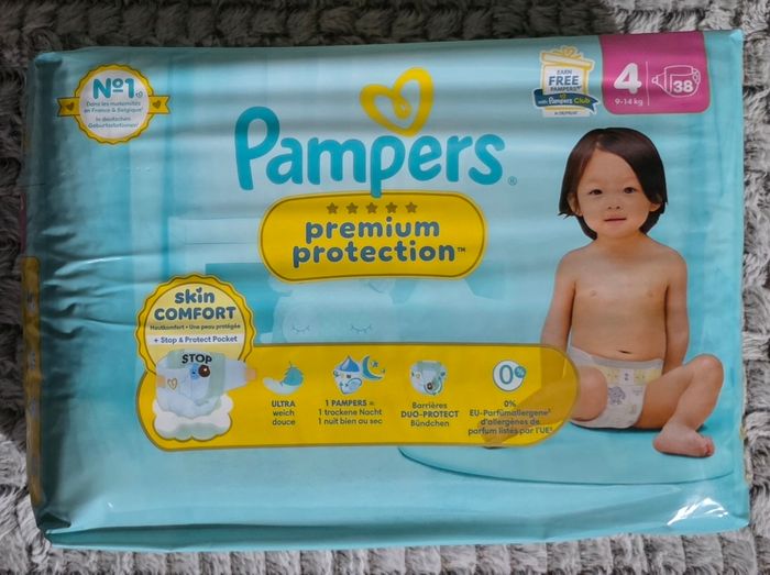 Un paquet de 38 couches Pampers premium protection taille 4