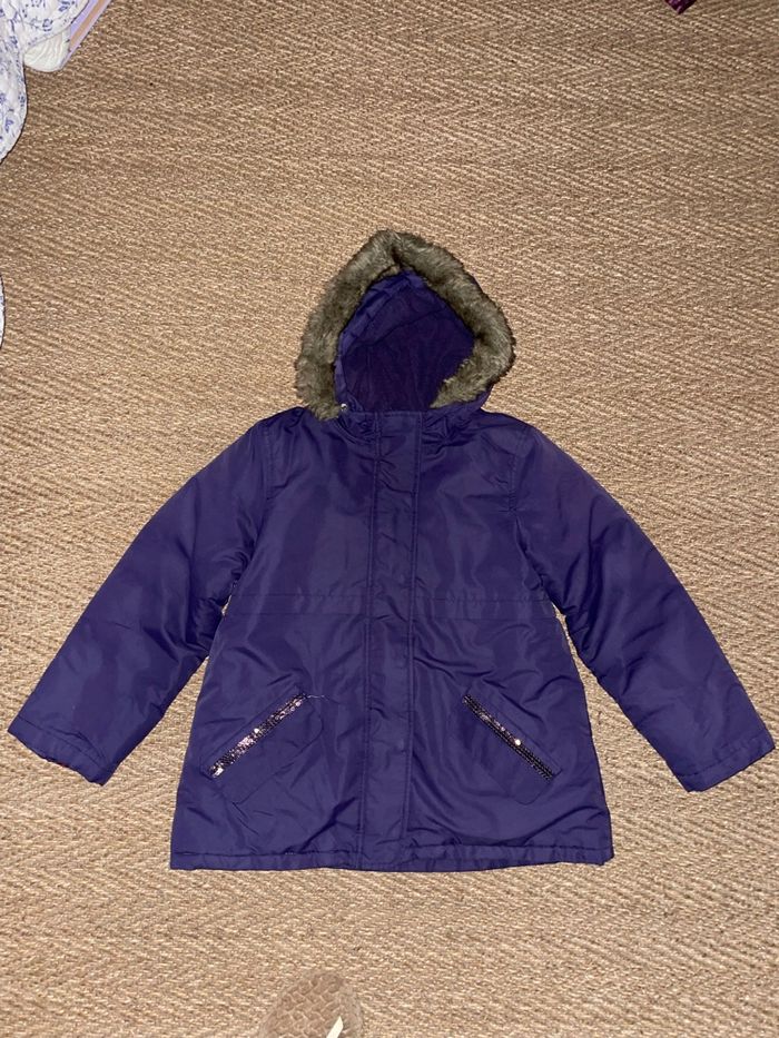 Acheté neuf Servi à un seul enfant Très très chaud La doudoune intérieure n’a jamais servi seule et est à l’état neuf Sur l’imperméable, un accroc réparé au niveau de la poche droite (cf photo) et le bout des manches est abîmé à certains endroits L’ensemble est en bon état voire très bon état Pas de taches