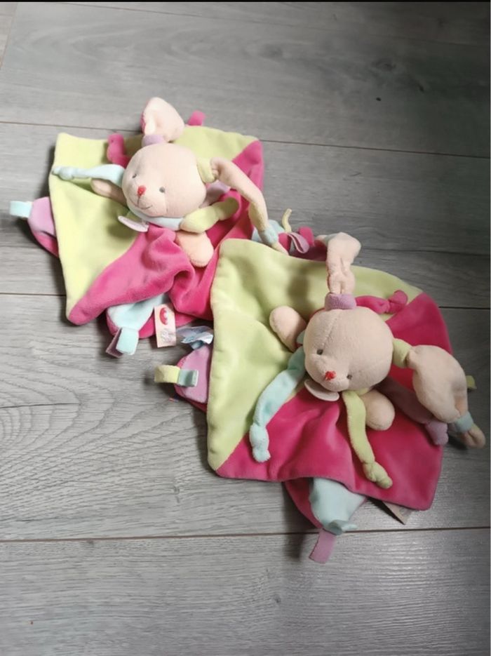 BABYNAT BABY NAT SOS DOUDOU LAPIN PLAT ROSE VERT GOURMANDISE 20€ le doudou
