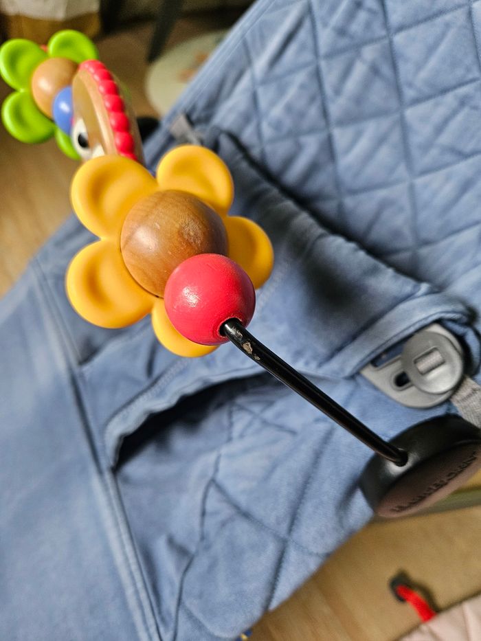 Transat Babybjorn et son arche de jeux. La housse est légèrement délavée mais pas de tâches. Ça a été lavée avec la lessive bio avant la vente. Sur l'arche la peinture est un peu partie de côté (voir photo). Indispensable pour les bébés:)