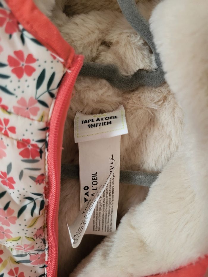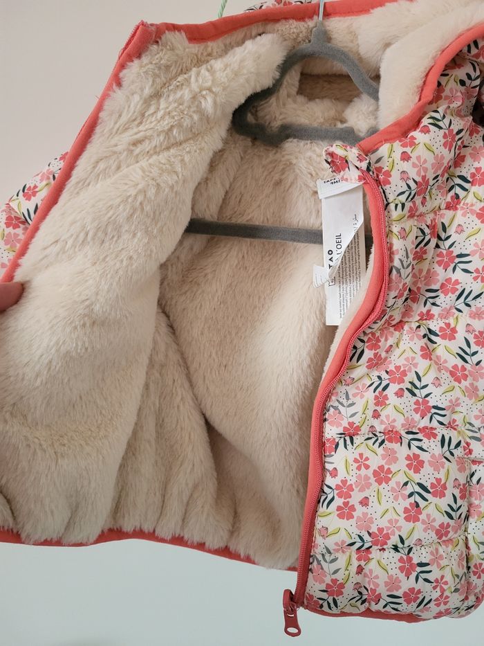 Manteau a fleurs TAO 9 mois Interieur chaud. Mis 1 fois en excellent état