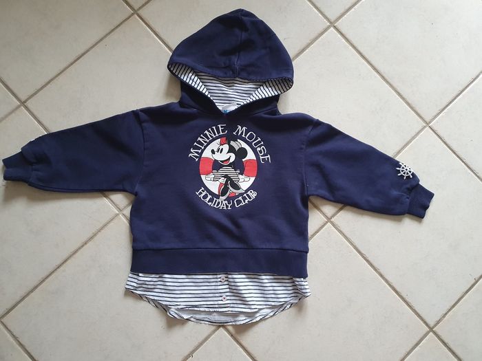 A vendre sweat Minnie / pull, style marinière, avec capuche. Taille 6 ans. Marque Disney. En très bon état, lavé, repassé. N'hésitez pas à jeter un coup d'œil sur mon dressing (d'autres vêtements en vente). Une réduction dès 2 articles achetés !