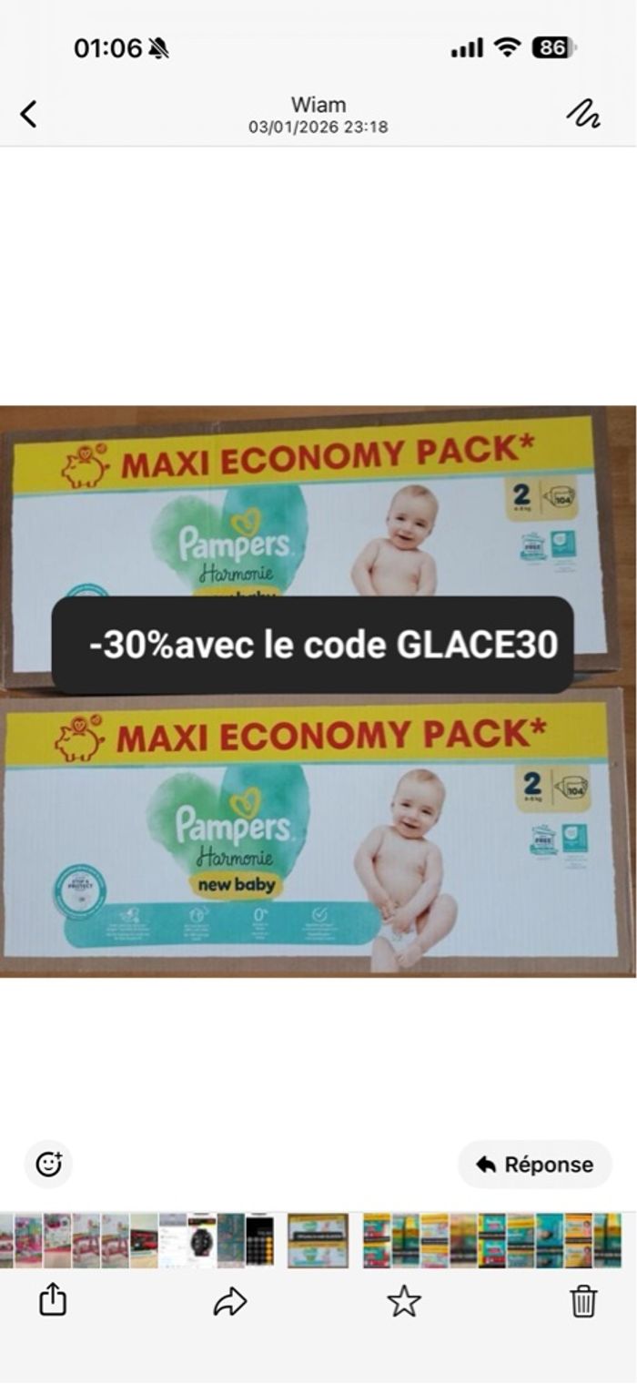 2 cartons de couches Pampers taille 2