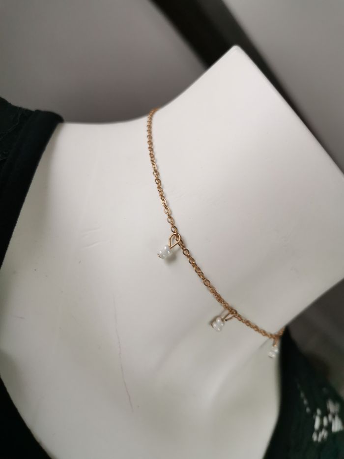Chainette dorée avec des perles blanches en pendentif - photo numéro 5