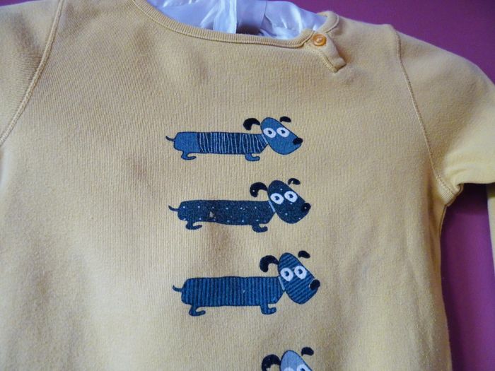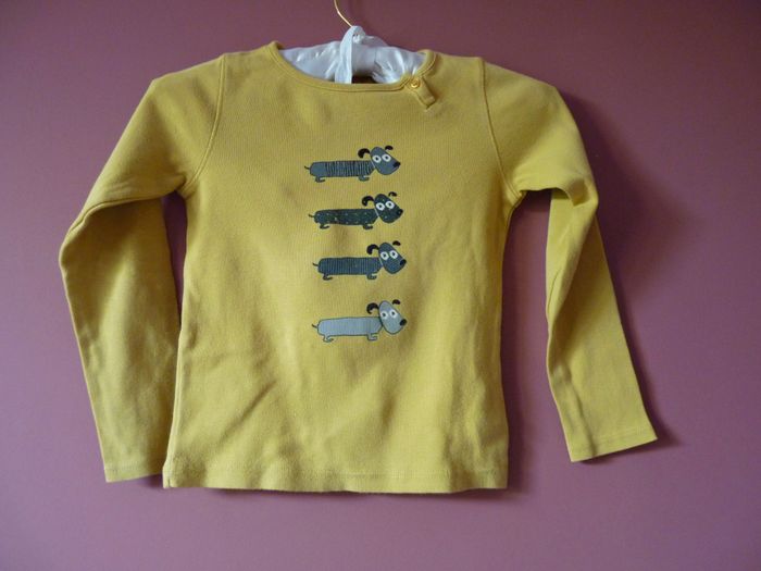 T-shirt Fille Okaidi 6 ans jaune moutarde motif chien TBE - photo numéro 1