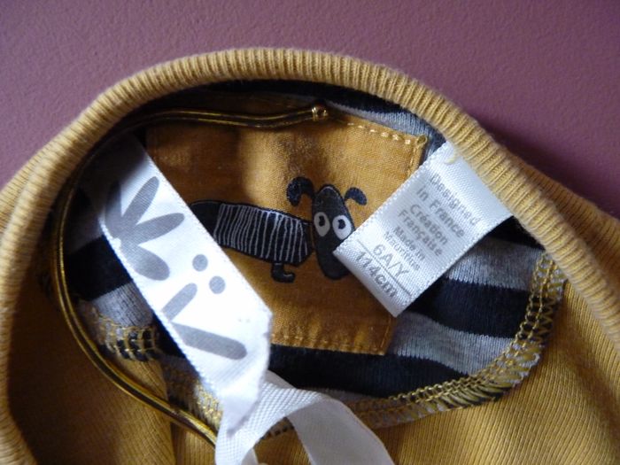 T-shirt Fille Okaidi 6 ans jaune moutarde motif chien TBE - photo numéro 4