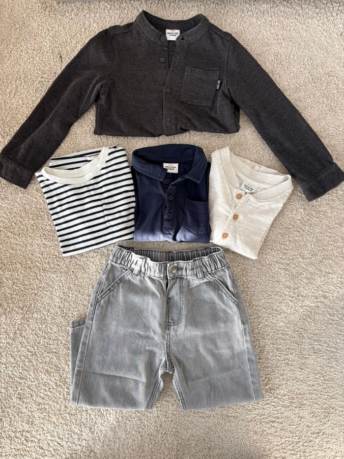 Lot de vêtements Tape à l’œil Taille 2 ans hormis le haut rayé blanc et noir taille 2-3 ans Tous les articles sont en parfait état, peu portés Possibilité de dissocier le lot si besoin