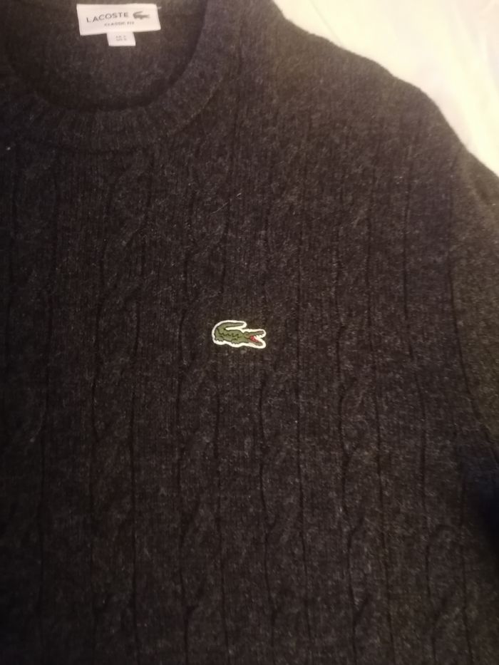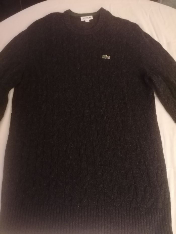 Pull lacoste taille S gris anthracite aisselles jusqu'en bas 46 cm
