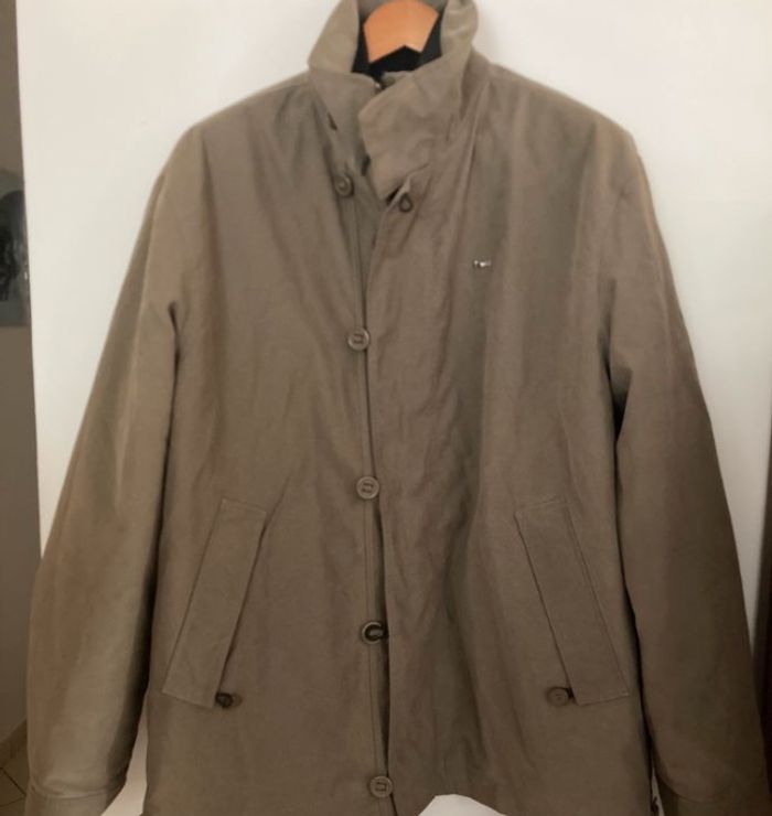 Taille 58 Lacoste Dimensions: Longueur:77 cm Carrure:54 cm Longueur de manches:72 cm Suite un désistement, nous remettons cette belle parka 3 en 1 Lacoste en excellent état Parka 3 en 1, c'est à dire une parka et une veste 2 en 1, celle-ci étant réversible. La veste s'attache par 3 points aux manches et au col. La parka est composée à 70% de coton et la veste en polyester. La parka se ferme à l'aide d'une fermeture éclair et d'une patte boutonnée. Le col se ferme jusqu'en haut.