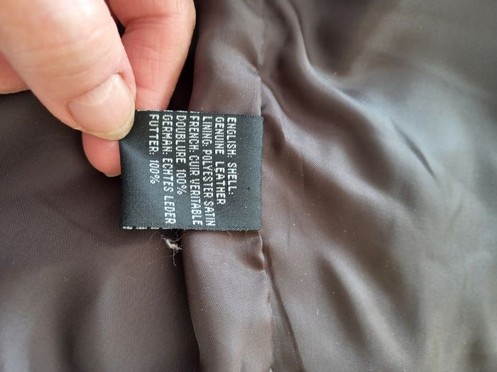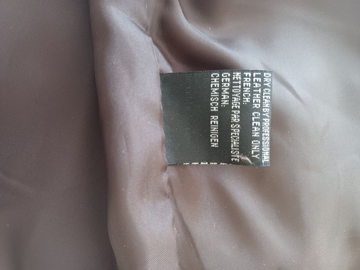 En cuir Couleurs : beige, brun et bleu Un petit defaut sur un bouton (voir photo) Neuf sans étiquette Jamais portée Doublure et dos en polyester